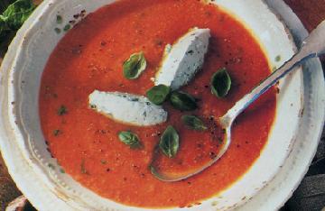 Paradicsomleves vörös lencsével, bazsalikommal, tejszínes friss sajttal.